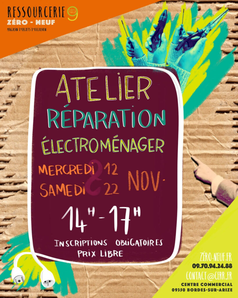 14h – 17h : atelier de réparation d’électro-ménager