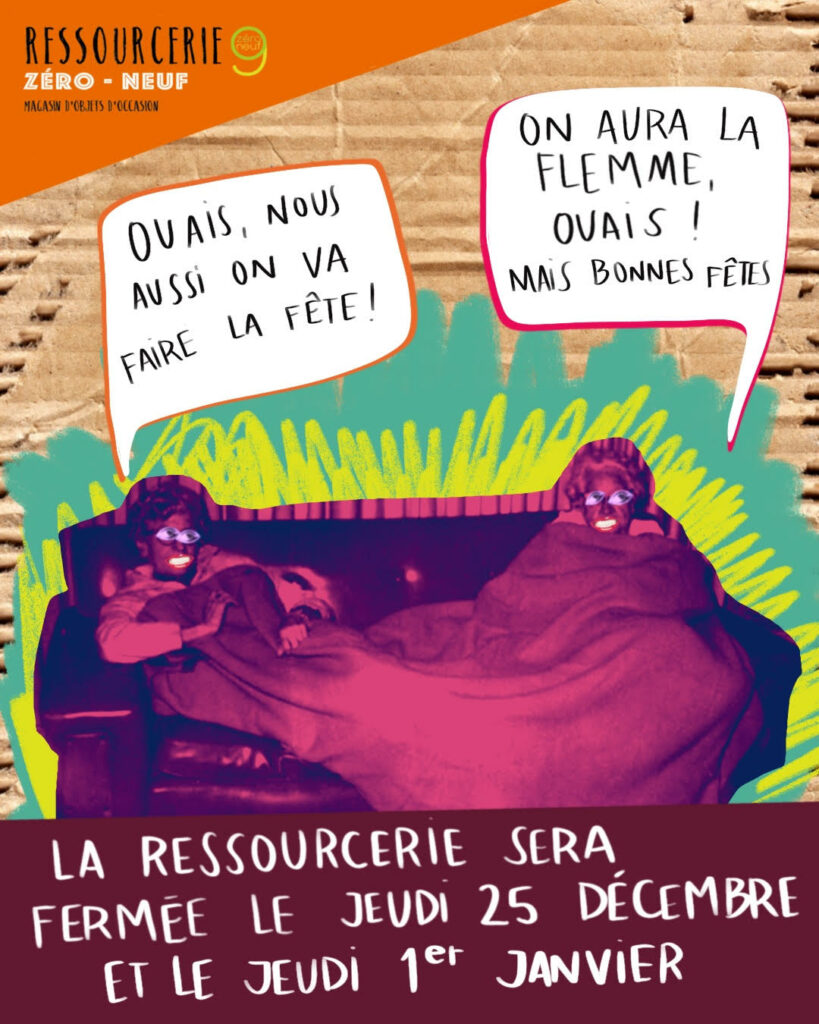 À partir de cette année, la ressourcerie sera fermée le 25 décembre et le 1er janvier. Cette année, ça tombe un jeudi et un jeudi, donc les dépôts seront fermés.