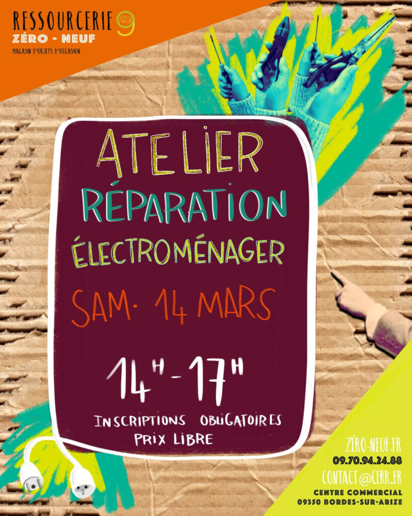 Le programme des ateliers de mars à la ressourcerie zéro-neuf, même pas en retard ;).