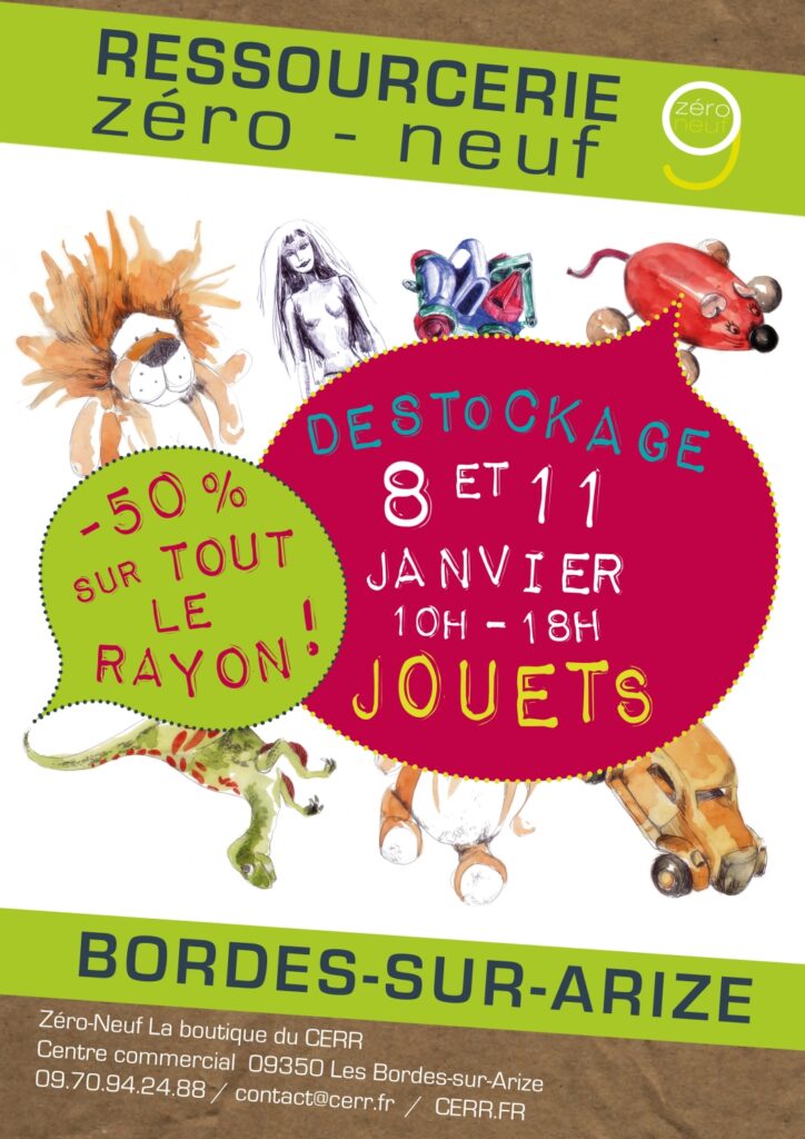 Une fois par mois nous faisons une semaine de déstockage thématique, jouets, livres, vaisselle, électro, textiles et bien d’autres encore !
